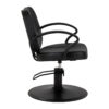 Minimalistyczna czerń w połączeniu z estetycznymi przeszyciami sprawia, że fotel doskonale komponuje się z różnymi stylami wnętrz salonów fryzjerskich, wprowadzając elegancki i nowoczesny akcent