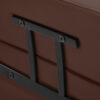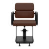 Wypełnienie z wytrzymałej pianki oraz obicie z przyjemnej w dotyku skóry syntetycznej zapewniają długą żywotność mebla. Materiały są odporne na wilgoć, trwałe i łatwe do utrzymania w czystości. Tapicerka w odcieniach brązu w połączeniu z czarnym stelażem podkreśla nowoczesny charakter fotela, dzięki czemu doskonale komponuje się z wystrojem profesjonalnych salonów.