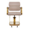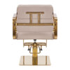 metalowe, geometryczne podłokietniki w odcieniach złota umożliwiają prawidłowe ułożenie barków klienta, co ułatwia precyzyjne strzyżenie