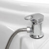 Leżanka została wyposażona w głęboką ceramiczną misę odporną na uszkodzenia i łatwą w czyszczeniu. Stabilna konstrukcja z elementami drewna oraz miękka tapicerka ze skóry syntetycznej w eleganckiej czerni zapewniają trwałość i wygodę. Dodatkowa szafka umożliwia przechowywanie akcesoriów, a praktyczne rozwiązania, takie jak mieszacz temperatury czy ukryte przyłącza wody, zwiększają komfort pracy